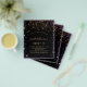 Por favor, note que este convite está no papel de folheto e é muito fino. Os envelopes não estão incluídos. Para convites mais espessos (mesmo design) visite nossa loja. Para um doce elegante 16, 16 anos. Um fundo na moda preto. Decorado com brilho de ouro falso roxo, faíscas e cordas de luz de ouro. Personalize e adicione um nome, idade e detalhes da festa. O nome é escrito com um script de estilo manuscrito