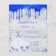 Por favor, note que este convite está no papel de folheto e é muito fino. Os envelopes não estão incluídos. Para convites mais espessos (mesmo design) visite nossa loja. Um fundo de olhar mal prateado. Decorado com a aparência real de pingar tinta azul, faíscas. Personalize e adicione um nome e detalhes da parte. O nome é escrito com um script de estilo manuscrito.