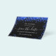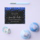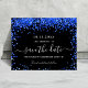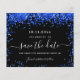 Observe que esta opção Save the date (Salvar a data) está no papel do folheto e muito fina. Os envelopes não estão incluídos. Para salvar o cartão Data (mesmo design) mais espesso, visite nossa loja. Um fundo preto decorado com confete azul real. Personalize e adicione uma data e nome/idade. O texto: Salvar a Data é gravado com um script de estilo com letra de tendência grande.