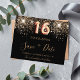 Observe que esta opção Save the date (Salvar a data) está no papel do folheto e muito fina. Os envelopes não estão incluídos. Para salvar o cartão Data (mesmo design) mais espesso, visite nossa loja. Uma moça e moda Salvem a data para uma doce festa de aniversário 16, 16. Um fundo preto decorado com falso brilho dourado. Modelos de uma data, nome e texto. Letras coloridas com ouro. O texto: Salvar a Data é gravado com um script de estilo com letra de tendência grande.
