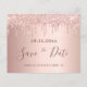 Por favor, note que esta data está no papel folheto e muito fina. Os envelopes não estão incluídos. Para uma placa mais espessa (mesmo design), visite nossa loja. Uma moça e moda Salvem a data para uma doce festa de aniversário 16, 16. Um fundo metálico rosado feminino, rosa dourado falso, decorado com pingos de brilho de rosa dourado, pintura pingando. Personalize e adicione uma data e nome/idade. O texto: Salvar a Data é gravado com um script de estilo com letra de tendência grande.