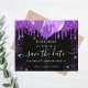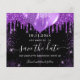 Observe que esta opção Save the date (Salvar a data) está no papel do folheto e muito fina. Os envelopes não estão incluídos. Para salvar o cartão Data (mesmo design) mais espesso, visite nossa loja. Uma moça e moda Salvem a data para uma doce festa de aniversário 16, 16. Um fundo preto decorado com gotas de brilho púrpura, faíscas e balões. Personalize e adicione uma data e nome/idade. O texto: Salvar a Data é gravado com um script de estilo com letra de tendência grande.