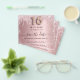 Observe que esta opção Save the date (Salvar a data) está no papel do folheto e muito fina. Os envelopes não estão incluídos. Para Cartões salve a data mais espessos (mesmo design) visite nossa loja. Uma moça e moda Salvem a data para uma doce festa de aniversário 16, 16. Leve fundo metálico de aspecto fino, cor-de-rosa, decorado com gotas e poeira de prata cor-de-rosa e falso. Personalize e adicione uma data e um nome/texto. O texto: Salvar a Data é gravado com um script de estilo com letra de tendência grande com alternâncias. Número 16 com uma fonte rosa dourada no estilo do balão.