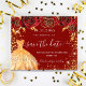 Flyer Doce vestido vermelho dourado de 16 anos orçamento