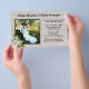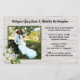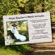 Natureza tematizada, convites de casamento orçamentários com um design de grão de madeira rústico. Adicione uma foto do casal a um quadro verde decorado com um aglomerado de rosas brancos de praia. Os nomes da noiva e do noivo são escritos em cima. Todo texto da cerimônia (e recepção) é adicionado do lado direito, próximo à foto. Um grão de madeira leve é a imagem de fundo nesta mesma barato de papelaria de casamento. O modelo de foto quadrada funcionará para orientações paisagísticas ou de retratos, com assunto no centro da foto.