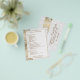 Tonalidades de ouro Elegante, local floral sobre modelo de folheto personalizável em fundo branco para lista de menus de serviço. Formatação de texto livre disponível contatando o designer deste design.