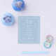 A dusty blue colored background, white colored frame. Personalize and add your monogram initials, names and the details.
