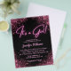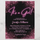 é uma garota, néon cor-de-rosa escrevendo à mão preto fundo na moda chá de fraldas convite