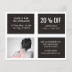 Panfleto elegante, modelo de design de cupons com uma foto profissional de estúdio. Ferramenta de marketing perfeita para seus clientes. Este folheto é totalmente personalizável, você pode adicionar seus detalhes pessoais a ele facilmente. Se precisar de ajuda para personalizá-lo, entre em contato conosco.