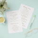 O programa de casamento "faux gold Budget" (impresso em papel para folheto fino), que inclui um design simples e mínimo com os nomes da noiva e do noivo numa fonte serif tradicional e o meio e sobrenomes num roteiro de caligrafia elegante. Um estilo clássico que é perfeito para um casamento formal.