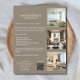 Promova sua marca com este folheto profissional elegante e personalizável, projetado para criar uma impressão duradoura. Carregue 3 fotos pessoais ou de portfólio, adicione seu texto personalizado ou lista de serviços e inclua seus detalhes de contato para ajudar os clientes a chegar a você facilmente. Um código de QR digitalizável vincula diretamente à sua página de reserva de consulta, mídia social, site ou qualquer URL personalizado — fazer mais fácil do que nunca conectar-se. Ideal para designers de interiores, estilistas pessoais, treinadores, realtores, profissionais de beleza e outros profissionais baseados em serviços que querem uma ferramenta de marketing polida e moderna.