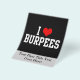 Encoste suas coisas na academia ou ao redor da cidade neste legal e engraçado equipamento de burpees com fundo preto e um coração vermelho. Excelente para um treinador pessoal, um entusiasta de exercícios e malhações ou um professor da classe de exercícios que trabalha no duro que adora fazer os clientes suarem e fazerem essas simulações divertidas de exercícios de combinação de tomadas e tomadas de pulso. Todos os Designs Copyright © 2012 www.CuteComfy.com