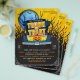 Folha de Marketing da Igreja Halloween ou Folheto de Eventos de Anúncio de Tratamentos com Carro Azul Cheio de Doces & Pumpkin, Lua Azul, Cerca e Árvores. Personalize Para O Seu Gosto.