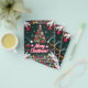 Esta é uma alegre design de Natal com ouro de árvore de Natal, luzes de Natal, flocos de neve e fundo verde escuro com milhares de estrelas.