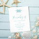 Este moderno convite mínimo para o casamento na praia tem um fundo branco com texto azul de vidro marinho, dois estrelas-do-mar no topo, e caligrafia tradicional com script. As costas estão verdes. Este convite para casamento costeiro é de tamanho menor impresso em papel mais barato, sem um envelope. Se você quiser outra versão do orçamento em um papel ligeiramente melhor, com um envelope que custe um pouco mais, entre em contato comigo através do Zazzle Chat, ou use a opção Transferir para uma "folha de papel simples" 4,5"x 5,6".