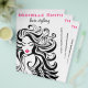 Este design apresenta um desenho chic e vintage e o nome da sua empresa. O lado frontal mostra uma elegante ilustração artística de uma mulher com cabelos fluidos e estilizados em uma paleta preta e branca. A mulher tem lábios cor-de-rosa, adicionando um pop de cor que contrasta lindamente com os tons monocromáticos do trabalho de arte. O texto inclui seu nome ou nome comercial em uma fonte limpa e em negrito, com texto personalizável "penteado" escrito abaixo em um tipo gracioso, estilo script. Você também pode adicionar detalhes adicionais, como endereço da Web, horário de trabalho e endereço comercial. O layout geral é minimalista, mas equilibra sofisticação e criatividade, fazer perfeito para um profissional na indústria de beleza ou cabeleireiro. Ele é adaptado para profissionais da indústria de extensões capilares, incluindo fornecedores, fabricantes e estilistas, assim como cabeleireiros, perucas, salões de beleza e serviços de estilos personalizados, evoca luxo e elegância.