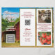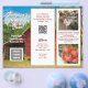Personalize este modelo de folheto comercial com temas de fazenda com suas fotos, logotipo e código QR. A design tripla contém modelos na frente e atrás. O lado 1 tem um lugar para o título / nome da fazenda / negócio. Inclua também um logotipo na página frontal, com mais uma seção de texto. Dois painéis brancos têm texto vermelho de celeiro por horas, localização e informações sobre a fazenda ou o que você vende. O painel do lado direito tem uma imagem de lista a ser substituída pela sua. Guarde ou mude a imagem de tomate e o fundo vermelho. Side 2 tem uma foto de página de cheio de uma torta assada. Substitua-o por uma foto sua (se quiser). Adiciona também uma seção sobre fotografia para personalizar o anúncio. Dobrar em 3.