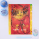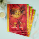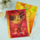 Retrato colorido, branco, vibrante, de palhaço artístico com uma fita vermelha rico, pintura aquarela em cores vermelha, amarela, castanha inspirada no Carnaval de Veneza.design elegante, fácil de personalizar com suas iniciais e seu próprio texto.