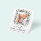 Cartão com fotos de Natal Feliz, Russo do Orçamento, com Azul Dusty, Verde e Verde Marrom, Ramos de Árvore Pinheira, Pinecones e fundo simples.