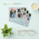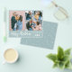 Planador de Papel Feriado de Escova de Natal Feliz, Simples Colagem de 4 Fotos, em azul empoeirado. Este cartão festivo, minimalista, com quatro (4) fotos da família apresenta uma bonito colagem fotográfica e diz que "Feliz Natal" é escrito em um tipo de letra de escrita de pincel com letra escrita à mão. Do lado de trás, fundo de neve. Bonito cartão de boas-vindas para sua família e amigos na temporada de festas de inverno.