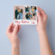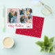 Ordenador de Papel Feriado do Escovo Vermelho de Natal Feliz, Colagem de 4 Fotografias Simples e Moderno, em branco vermelho. Este cartão festivo, minimalista, com quatro (4) fotos da família apresenta uma bonito colagem fotográfica e diz que "Feliz Natal" é escrito em um tipo de letra de escrita de pincel com letra escrita à mão. Do lado de trás, fundo de neve. Bonito cartão de boas-vindas para sua família e amigos na temporada de festas de inverno.