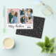 Cinzas modernas, simples, pretas e brancas, colagem de 4 fotos Feliz Natal Folheto de Papel Feriado de Pincel de Natal. Este cartão festivo, minimalista, com quatro (4) fotos da família apresenta uma bonito colagem fotográfica e diz que "Feliz Natal" é escrito em um tipo de letra de escrita de pincel com letra escrita à mão. Do lado de trás, fundo de neve. Bonito cartão de boas-vindas para sua família e amigos na temporada de festas de inverno.