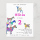 Uma coleção divertida e excêntrica de cabras coloridas e psicodélicas em rosa vibrante, roxo, azul, laranja, amarelo e aqua com cabra-anã, cabritinho e cabras em pé sobre cabras. Um convite de aniversário de 2 anos multicolorido e fofo e econômico. Este convite de festa de animais da fazenda é fácil de personalizar para criar um convite de festa único, adequado para crianças e adultos amantes de cabras. Arte original da artista Catherine Sweetman