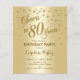 Convite de Festa de Aniversário de 80 Anos com Orçamento. Design elegante com efeito de brilho dourado e folha de ouro. Saúde pelos 80 Anos! *** Por favor, note que este design será impresso em um papel de flyer muito fino e não vem com envelopes. Perfeito para convites com orçamento limitado. Se você está procurando pelo mesmo design, mas em papel mais grosso, por favor, visite nossa loja.