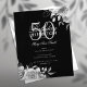 Design de "Programa de Festa de aniversário" elegante com Convênio Floral em Prata e Preto com texto personalizado.