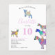 Uma coleção de cabras coloridas e bonitas em rosa vibrante, roxo, azul, laranja, amarela e aqua. Um belo convite de aniversário de animais de criação é o 10º, com cabras e cabras bebês em cabras. Este convite de festas divertido é fácil de personalizar para criar um convite de festas único adequado para crianças e amantes adultos de cabras. Exemplares originais de cabra psicodélica rosa colorida da artista Catherine Sweetman