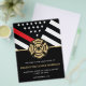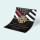 Este design apresenta uma bandeira de bombeiros com listras pretas e brancas, e uma fina faixa vermelha também. "Parabéns" e o crachá de bombeiro ficam acima do nome do bombeiro graduador. Celebre em estilo!