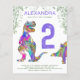 Seu pequeno T. rex está fazendo dois, então vamos comemorar. Este Tiranossauro Rex, colorido, e um estegossauro fofo convidam amantes do Dinossauro para uma festa pré-histórica de segundo aniversário da selva. Personalize este pequeno T. rex que torna 2 convites de festas adicionando o nome do aniversariante ou menina, o número do aniversário e os detalhes da festa e você está preparado para uma divertida festa de dinossauro roxo com tema dino. Todas as espécies de dinossauros são bem-vindas. Ilustração original de arte por Catherine Sweetman