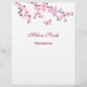 Uma cereja rosa bonito floresce e uma borboleta fofinha num fundo branco.