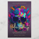 FLORAL SKULL ADULT HALLOWEEN - folheto de convite da parte em fundo roxo, você pode personalizar o texto