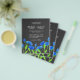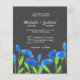 Flores silvestres modernas azuis de aguarela. Casamento elegante. Convite preto floral elegante. Escolha trendy para casamentos de verão.