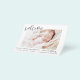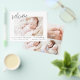 Colagem de Fotos Elegante de Anúncio Simples de Bebê do Orçamento que tem uma foto na frente e 4 Fotos no verso. As cartas contêm uma tipografia cursiva escrita moderna, escrita à mão, que é elegante, simples e moderna para ser usada por um bebê recém-nascido ou por uma menina enviada pela mãe e pelo pai da criança criança para a família e os amigos.