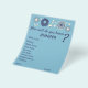 Teste o conhecimento de sua convidada sobre a mãe para ser com este divertido jogo de chás de fraldas. Estes lençóis apresentam flores azuis e cremosas colocadas sobre um fundo azul claro, fazer-as perfeitas para chás para bebês. Eles estão prontos para serem personalizados com o nome do convidado de honra e sua própria lista de perguntas. O verso pode ser personalizado com um slogan, título e data da festa.
