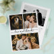 Orçamento, Elegante, Casamento de Colagem Fotográfica Acondicionada à Mão. Obrigado, personalizado barato de baixo orçamento. Na moda, obrigado de casamento minimalista, modelo de papel com três (3) fotos na frente e uma (1) foto na parte traseira. Com o texto "Amor e obrigados" em uma letra escrita tipográfica escrita, escrita à mão, em preto, sobre fundo branco. Na parte de trás, uma foto horizontal e seu obrigado, você envia uma mensagem modelo. ***POR FAVOR, NOTE! *** O PAPEL ORÇAMENTAL/FLYER É MAIS FINO DO PAPEL. SEM ENVELOPES INCLUÍDOS.*** ATUALIZE O PAPEL PARA UM PAPEL MAIS ESPESTO. *** Cartão postal: https://www.zazzle.com/wedding_photo_collage_love_and_thanks_thank_you_postcard-256313964226193537?dz=f2d662d9-964e-4076-bd13-f7f3df9e0ea7 Cardstock Tradicional com Envelopes: https://www.zazzle.com/love_and_thanks_script_wedding_photo_thank_you_card-256632561302382055 Personalize o nome personalizado e a mensagem do obrigado. Se preferir escrever manualmente a sua nota, basta eliminar o texto de amostra para obter mais espaço. Se precisar de ajuda ou item correspondente, entre em contato com o designer!