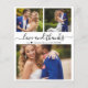 Orçamento, Minimalista, Elegante, Moderno Casamento de Colagem de Fotos de "obrigados e Amor", Obrigado, barato personalizado. modelo de obrigado de na moda com três fotos na frente e uma foto na parte de trás. Com o texto "Amor e obrigados" em uma fonte escrita de letras maiúsculas e minúsculas com letra maiúscula, escrita com letras maiúsculas, em preto sobre fundo branco. Na parte de trás, uma foto horizontal e seu obrigado, você envia uma mensagem modelo. ***POR FAVOR, NOTE! *** O PAPEL ORÇAMENTAL/FLYER É MAIS FINO DO PAPEL. SEM ENVELOPES INCLUÍDOS.*** ATUALIZE O PAPEL PARA UM PAPEL MAIS ESPESTO. *** Cartão postal: https://www.zazzle.com/wedding_photo_collage_love_and_thanks_thank_you_postcard-256313964226193537?dz=f2d662d9-964e-4076-bd13-f7f3df9e0ea7 Cardstock Tradicional com Envelopes: https://www.zazzle.com/love_and_thanks_script_wedding_photo_thank_you_card-256632561302382055 Personalize o nome personalizado e a mensagem do obrigado. Se preferir escrever manualmente a sua nota, basta eliminar o texto de amostra para obter mais espaço. Se precisar de ajuda ou item correspondente, entre em contato com o designer!