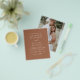 Budget Terra Cotta Brown Boho Wedding Modern Simple Wedding Primavera ou Summer Photo on Back Wedding Invtions - inclui uma bela e elegante tipografia de roteiro com uma moderna cor simples e clássica para a celebração especial do Dia do Casamento.