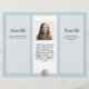 Modelo de folheto comercial triplo em cores azuis e bronzeadas com dólares de areia, modelo de logotipo e foto. As cores naturais dos painéis alternados azul-claro, branco e bronzeado em ambos os lados do papel do folheto do barato permitem personalizar seis painéis, frente e verso, com informações sobre a empresa ou serviço fornecido. São fornecidos dois modelos de fotos. O dólar de areia na frente pode ser substituído por um logotipo. O modelo de foto na seção central é para uma foto pessoal e para uma seção sobre. Um pequeno dólar de areia decora o fundo desse painel.