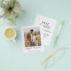 Orçamento Personalize esta Cinza Escura e uma Foto Branca Simples e Elegante De Dois Lados Salve o Convite de Data com sua mensagem e detalhes. Este convite chic inclui a tipografia de escrita manuscrita na moda moderna e elegante para a celebração do Casamento Especial a Ser.