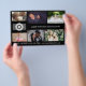 Folheto de marketing para um fotógrafo profissional personalizado com suas fotos, logotipos, informações de contato, texto personalizado e código QR. Folheto de promocional de colagem de fotos pretas para sua pequena empresa impressa com fotos do seu portfólio, seu logotipo e, no verso, suas informações de contato, código QR e muito mais.