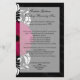 Coleção de correspondência elegante e elegante apresenta fundo preto com roldanas sutis, e um design de primeiro plano rodoso branco vívido com flor rosa brilhante da margarida gerbera, fuchsia magenta magenta gerbera. Muito elegante para um casamento no inverno, casamento de verão ou qualquer estação. Este item está disponível como uma coleção completa de correspondência, incluindo convites, cartões RSVP, Salvar Datas, Magnets, Stickers, Cartões de Local de Mesa, Planejamento de Casamento e Binders de Álbum de Fotografias, presentes de festa de casamento e Mais!
