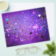 Fundo de faturas violetas com estrelas douradas e azuis. Fundo com estrelas.