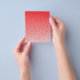 Flyer fundo vermelho e branco com quadrados pequenos