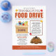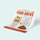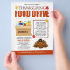 Folheto de doação de caridade de comida de ação de graças com cores de queda festivas, ilustrações da Turquia, folhas de outono e caixa de doação de comida. Personalize de acordo com o seu gosto.