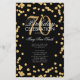 Design de "Programa de Festa de aniversário" elegante com Glitter Confetti em Dourado e preto com texto personalizado.