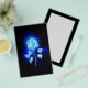 Rosa de abstrato a, sangrando a partir da chama azul sobre fundo preto. Rosa de incêndio.