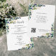 Por favor, note que este programa está no papel folheto e muito fino. Os envelopes não estão incluídos. Para programas mais espessos (mesmo design) visite nossa loja. Um moderno e elegante programa/programa/cronograma de casamento. Um fundo branco decorado com verde de eucalipto e folhagem de ouro. Personalize e adicione seus nomes e detalhes do casamento. Letras pretas coloridas. Texto de ambos os lados. Adicione o URL do seu site de casamento ao código QR no verso.